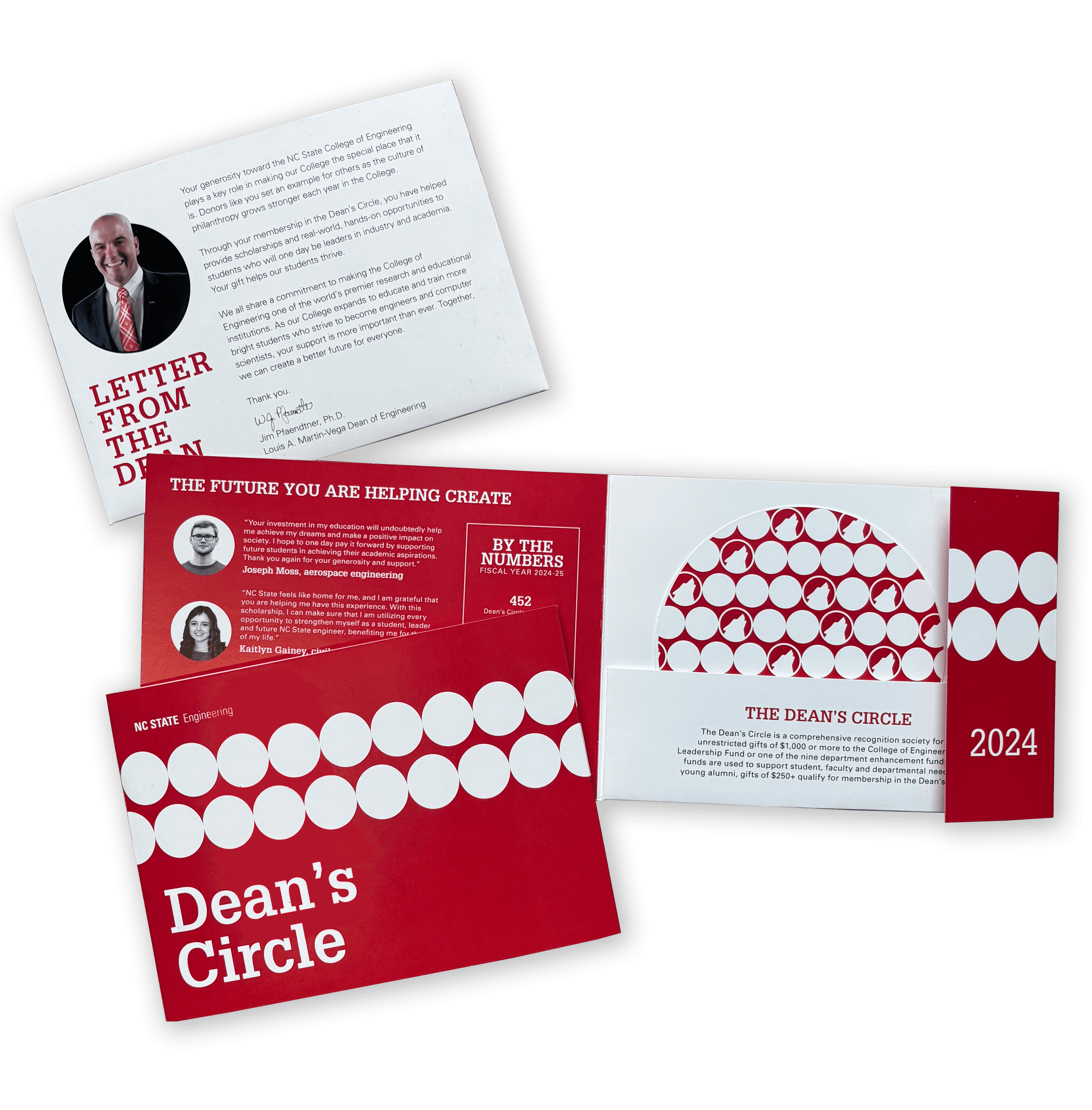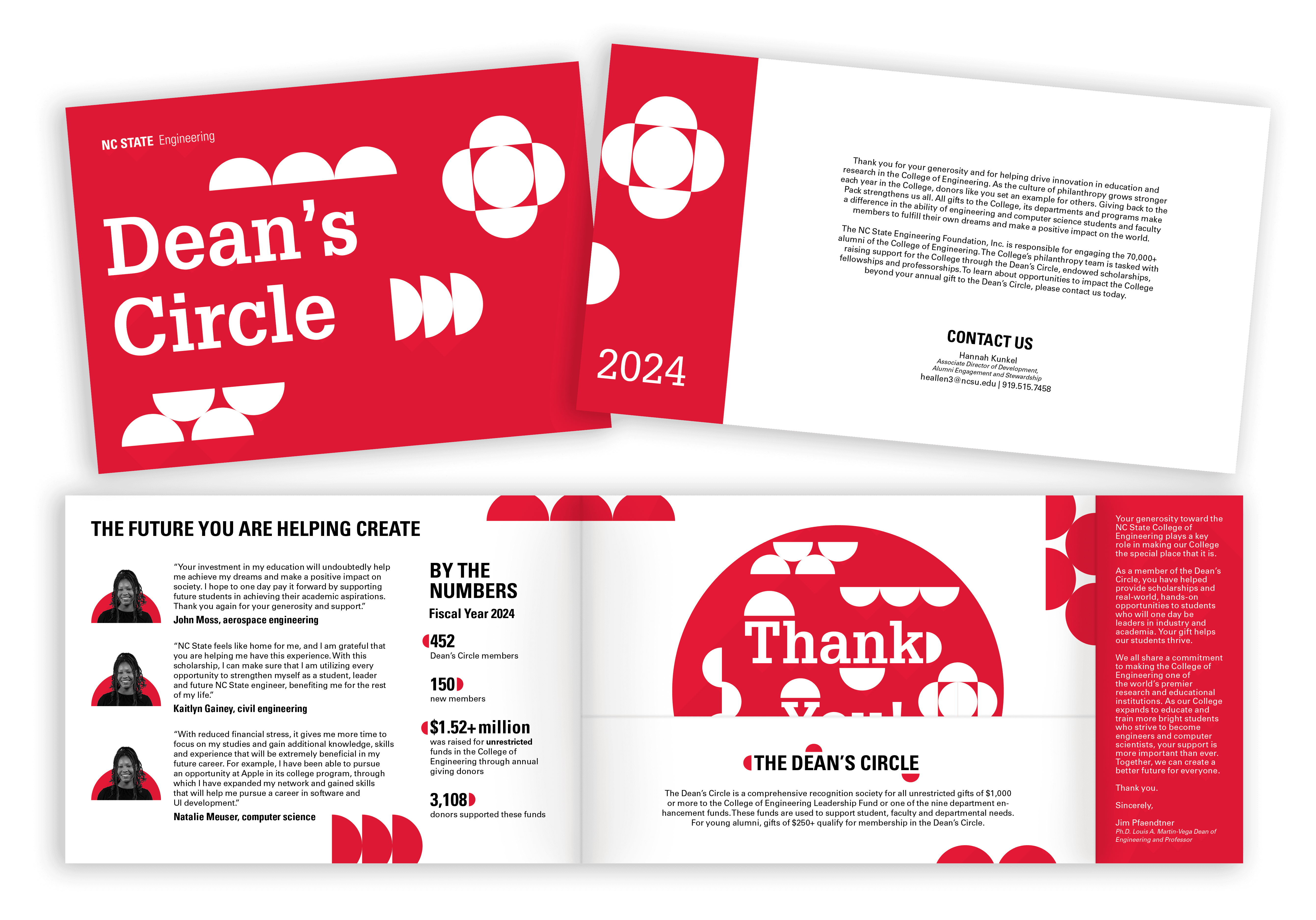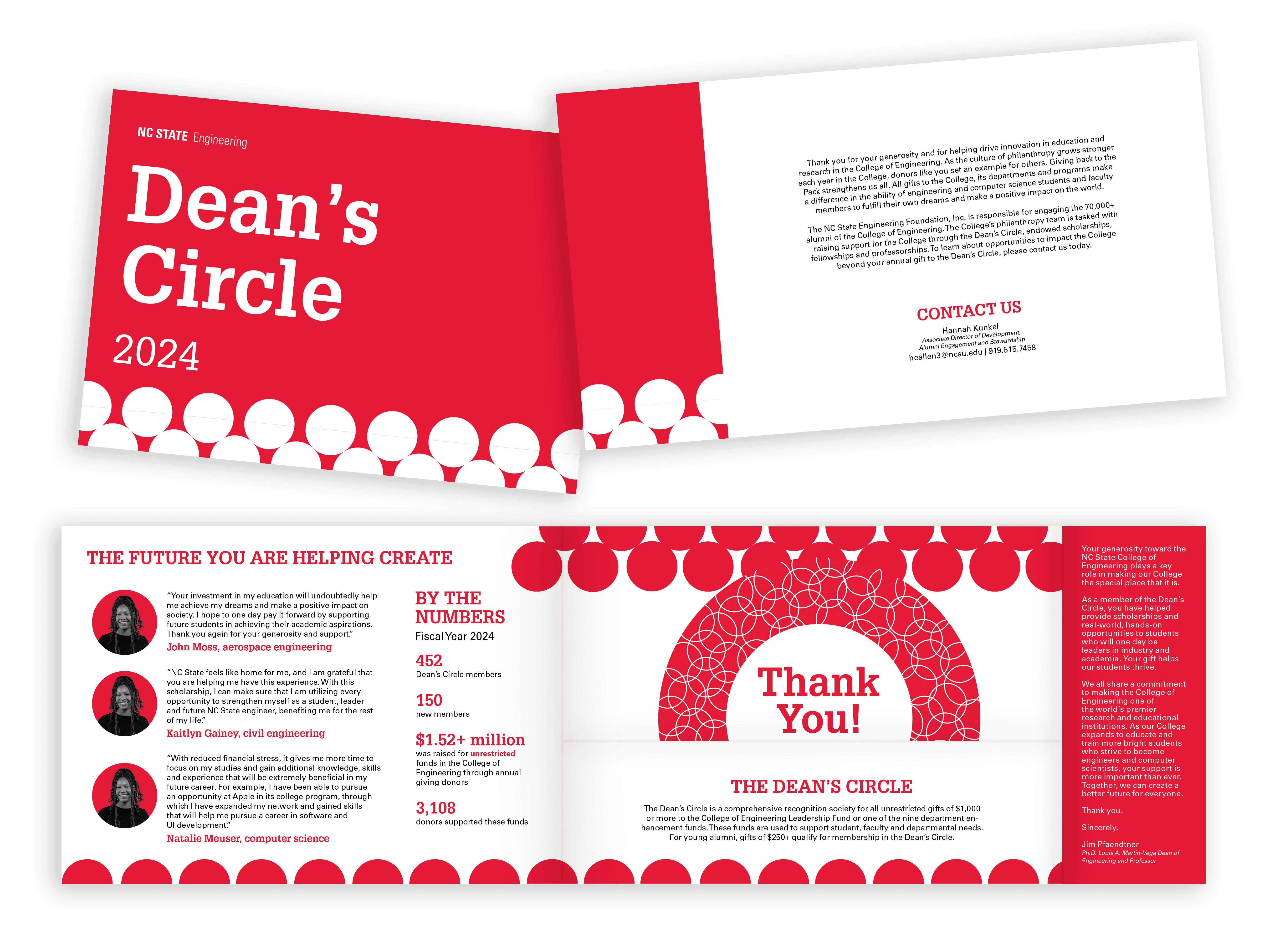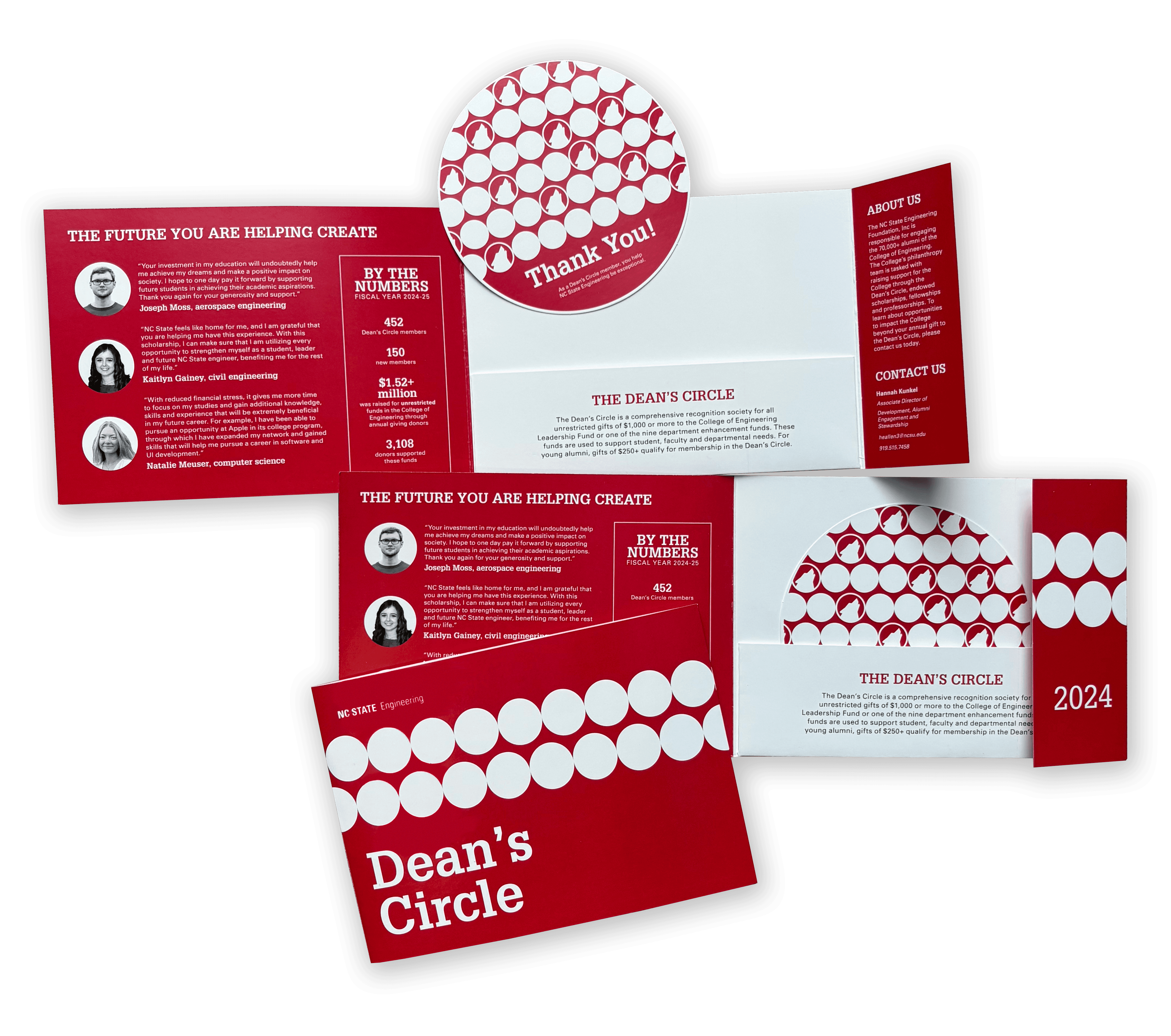 The Dean's Circle is a pamphlet sent out to donors of the College of Engineering as a thank you for their support to the students of the college. With a fun circular design and removable insert, this was designed as a keepsake for donors to hang on their fridge or display on their desks.