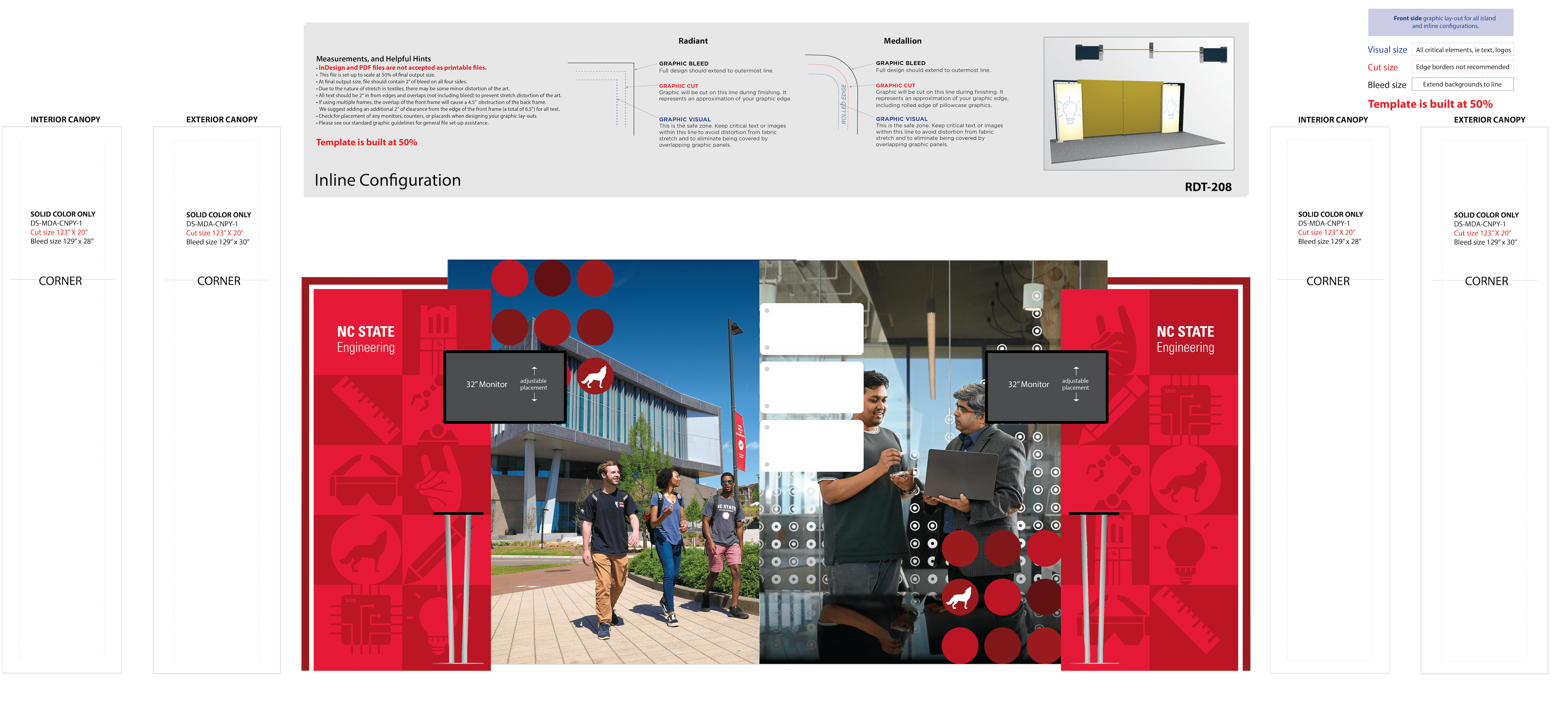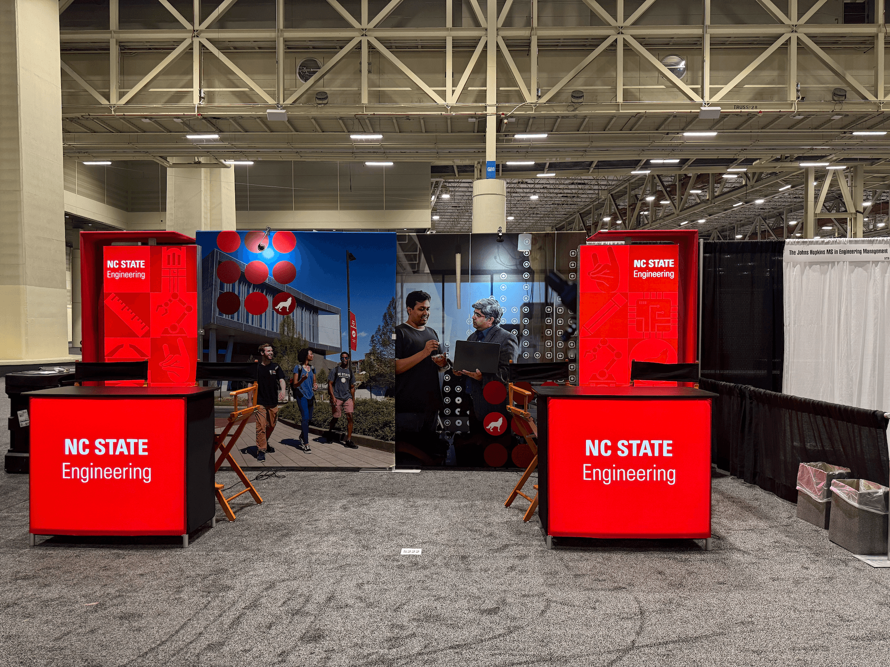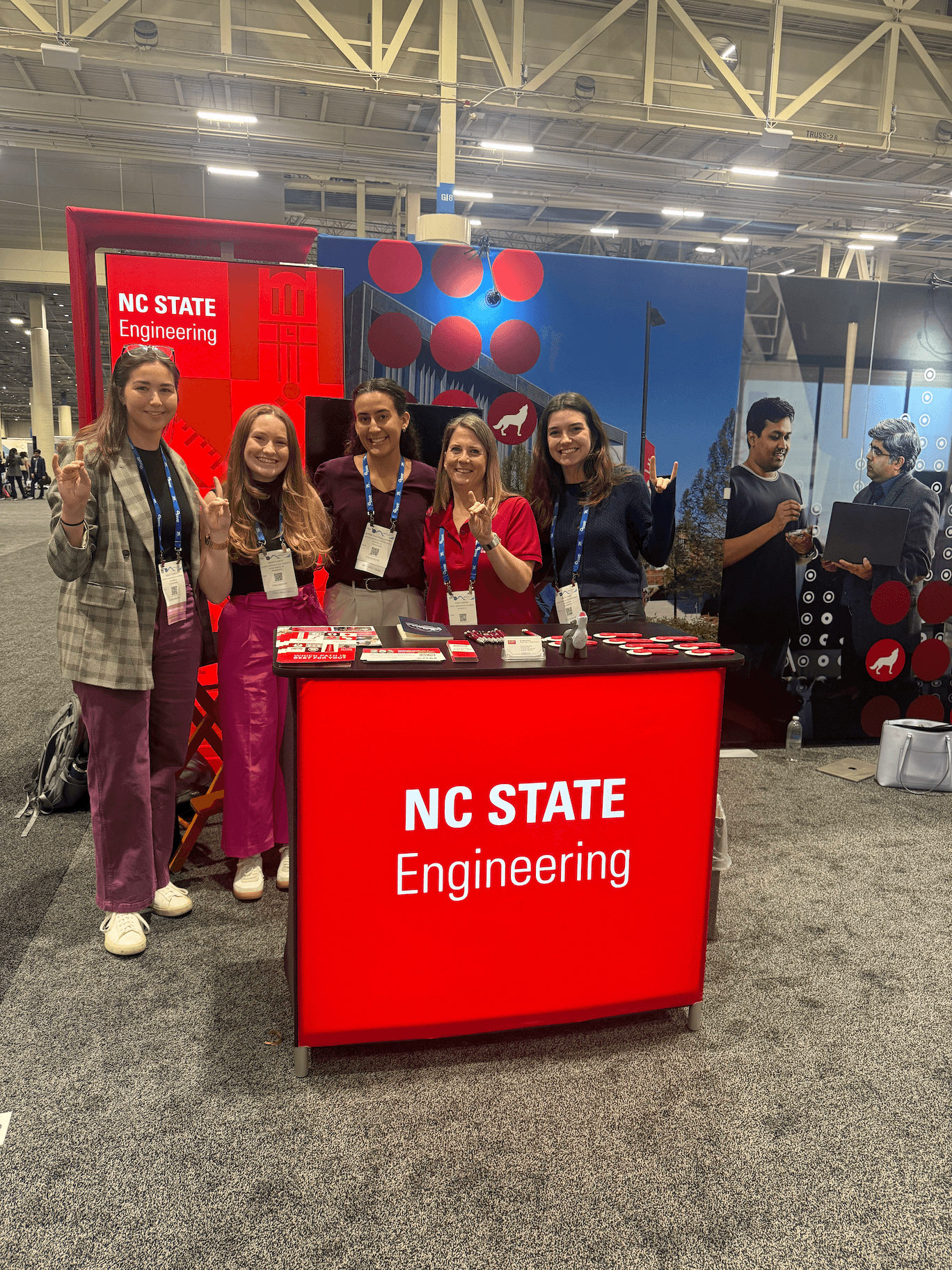I decided to use NC State's icons for the design since they could be general to the whole university, but also be specific to engineering and technology. I choose 9 icons and arranged them in a checker board design using NC State's Wolfpack Red color for a design that wasn't too overwhelming while also having strong branding for the college. I was told that the bold use of red and icons attracted a lot of foot traffic to the booth, which meant the goal of my design was reached!