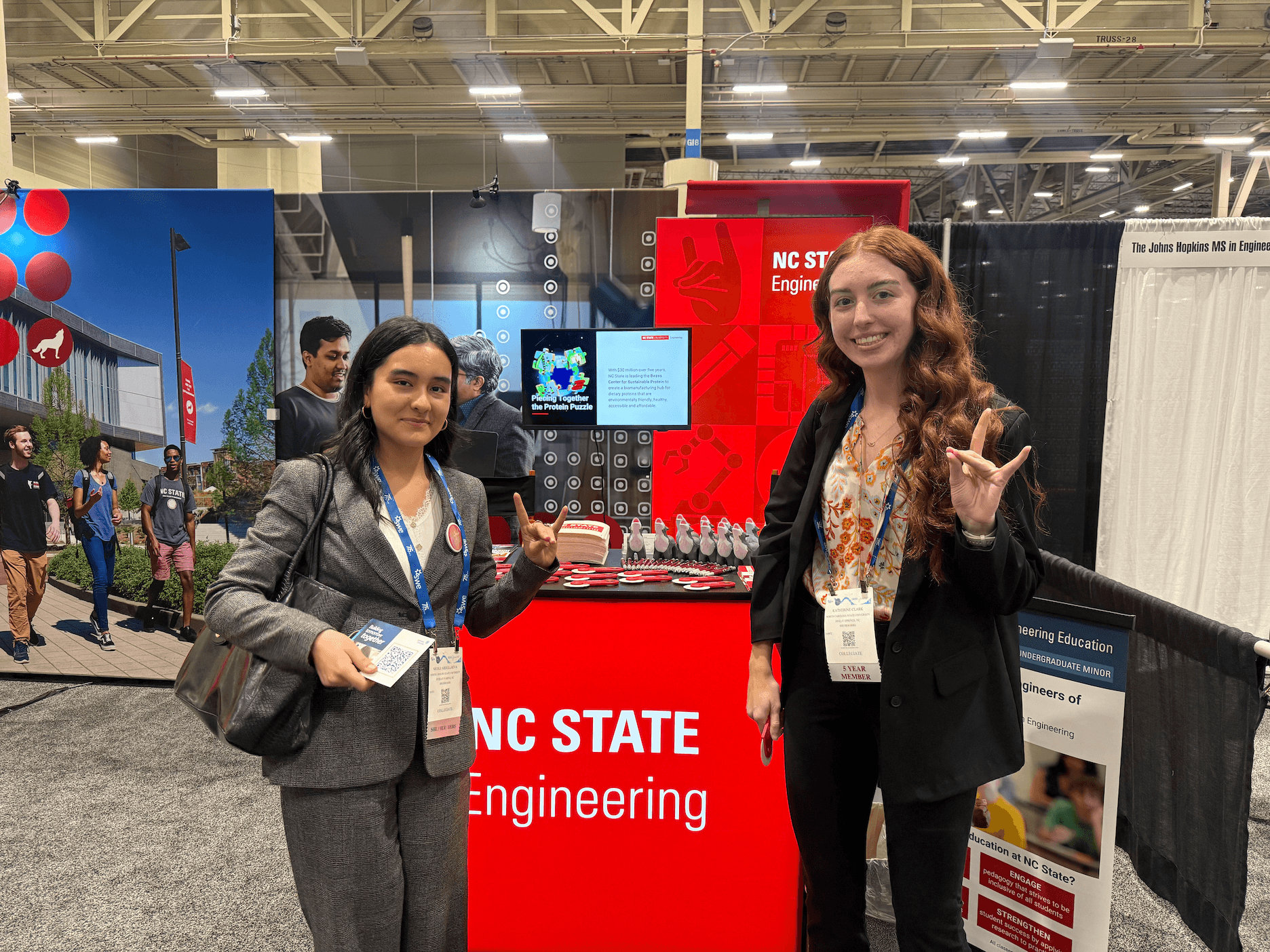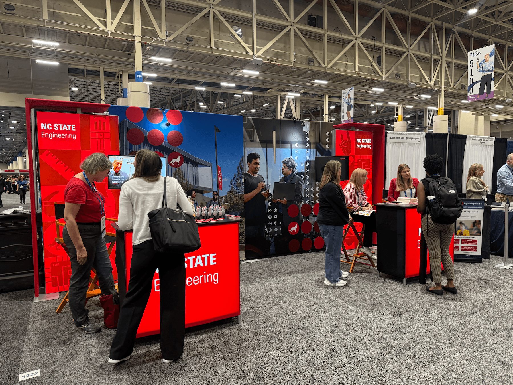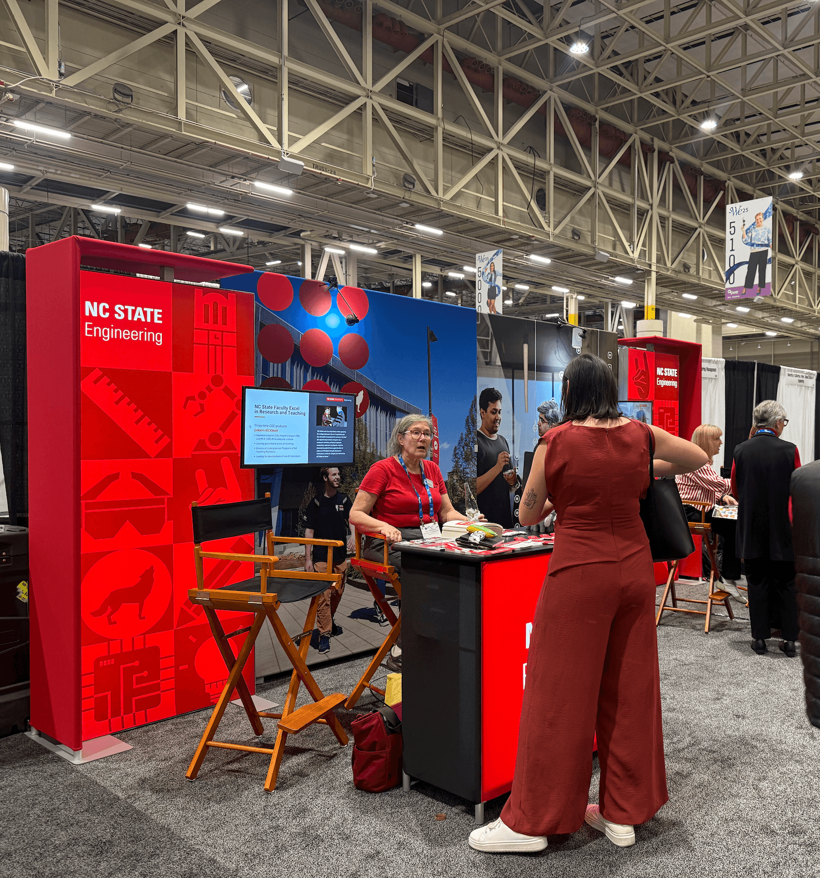 I decided to use NC State's icons for the design since they could be general to the whole university, but also be specific to engineering and technology. I choose 9 icons and arranged them in a checker board design using NC State's Wolfpack Red color for a design that wasn't too overwhelming while also having strong branding for the college. I was told that the bold use of red and icons attracted a lot of foot traffic to the booth, which meant the goal of my design was reached!