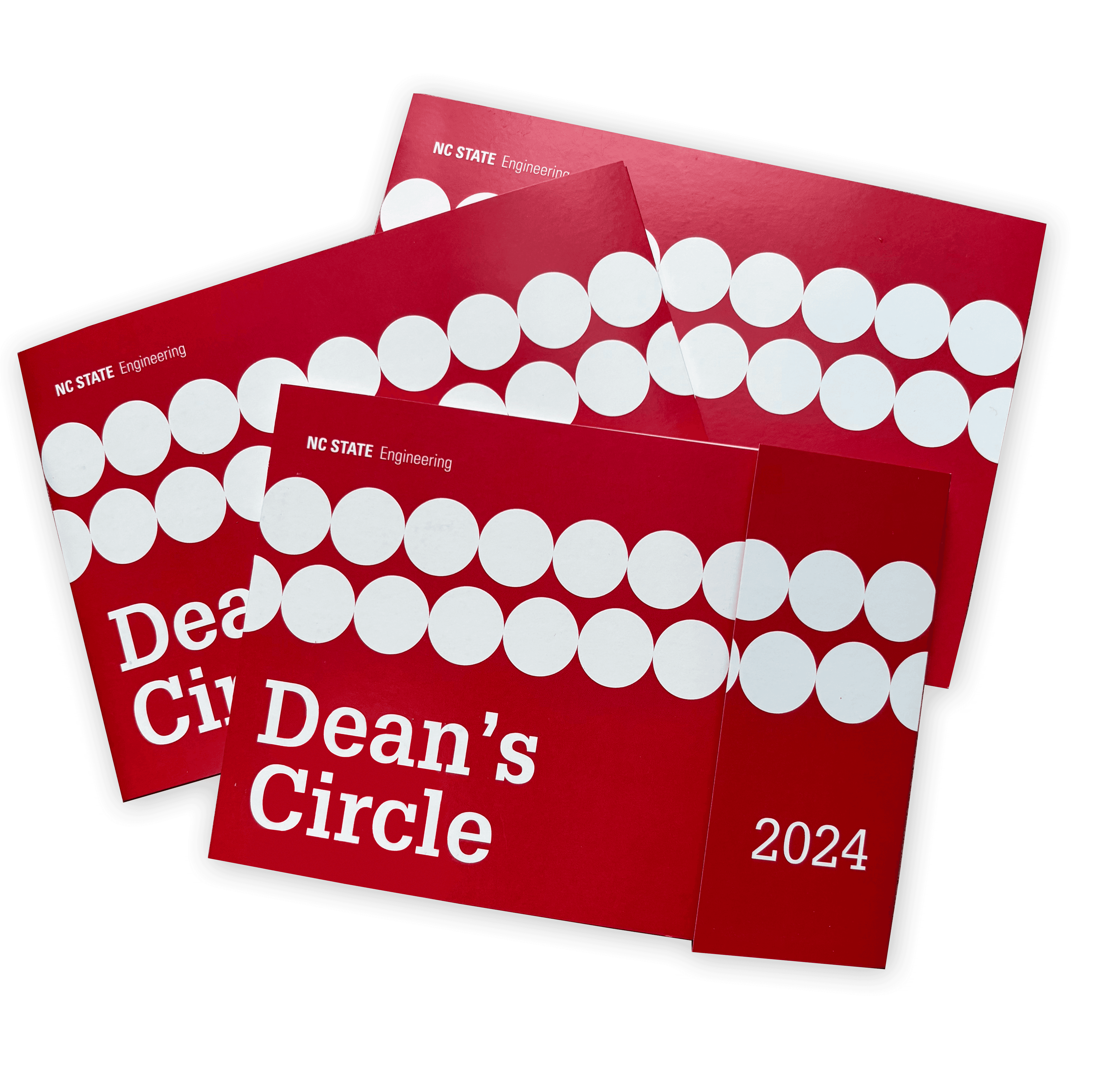 I created a variety of designs, all using circular motifs and NC State's Wolfpack Red for bold brand recognition and a fun, playful design. Using a circle motif in various ways, I wanted the design to be fun and eye-catching so those receiving it would recognize it as not only a source of information, but also as a keepsake.