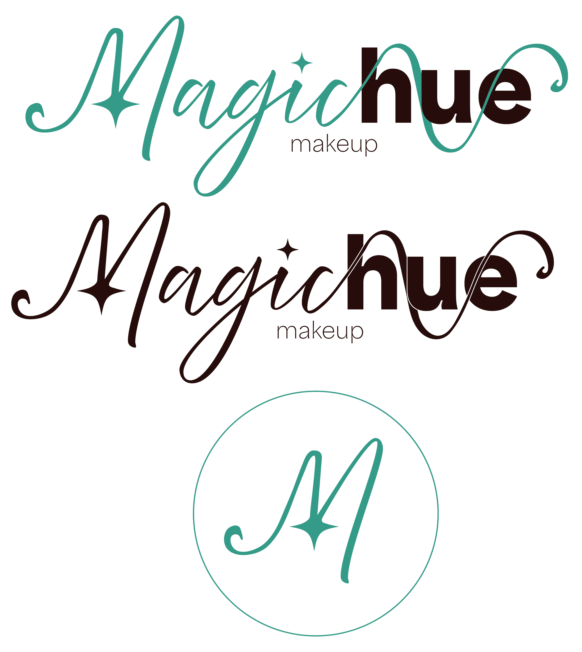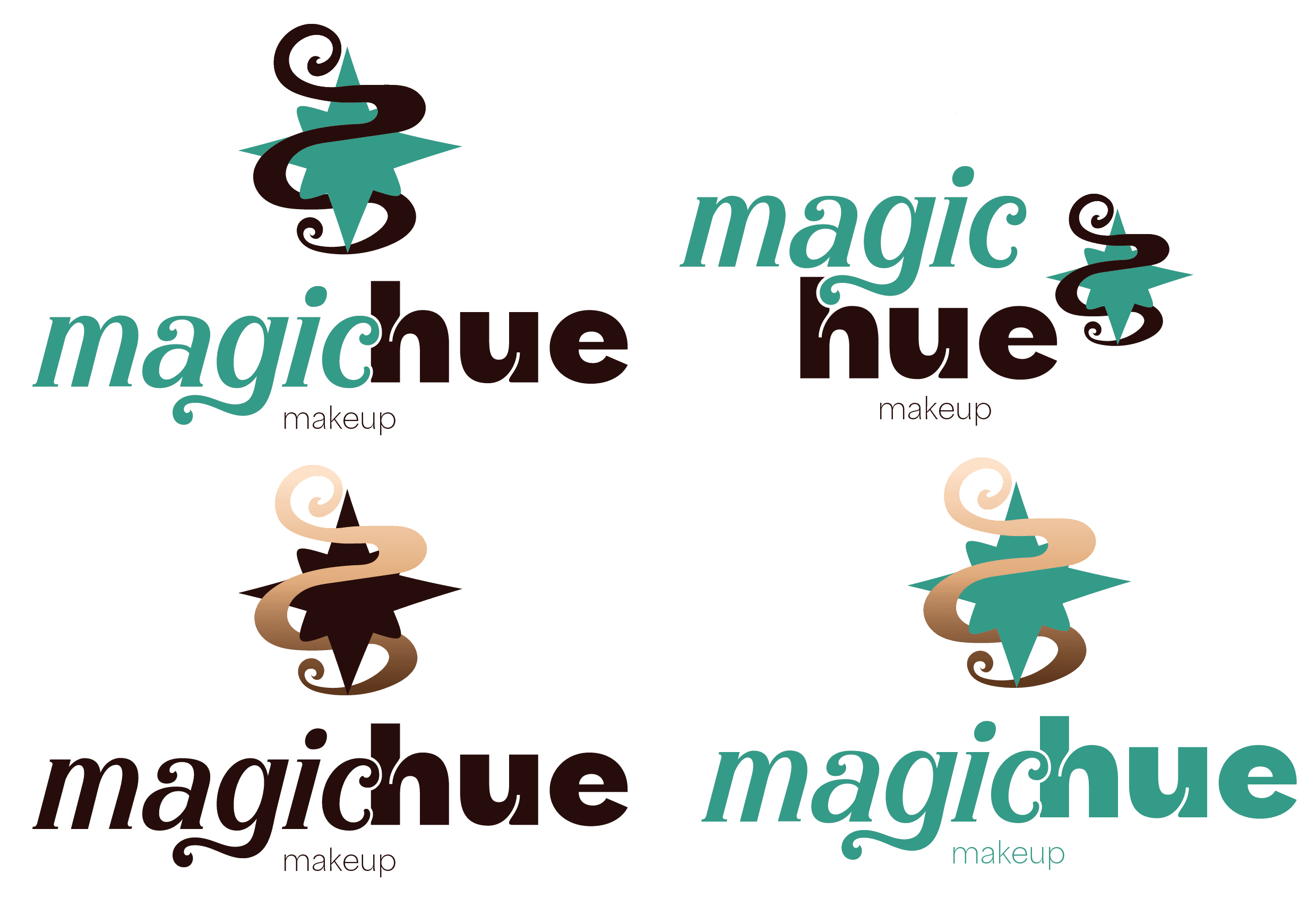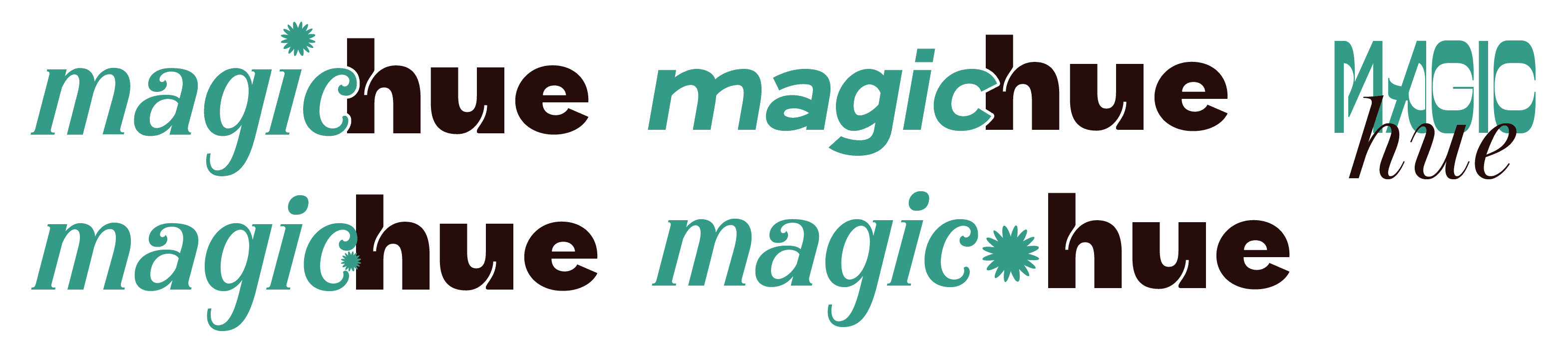 When we decided our name, our next step was to design a logo. We all came up with various sketches for the logo, but we ended up going with a sketch I designed and finalized. We came up with a logo and a logo mark for packaging and social media. We created various variations of the logo so it could be adapted to any color background when used for advertisings. Instead of creating a black and white version of the logo, we used Magichue's brand colors hue darkest and hue lightest.
