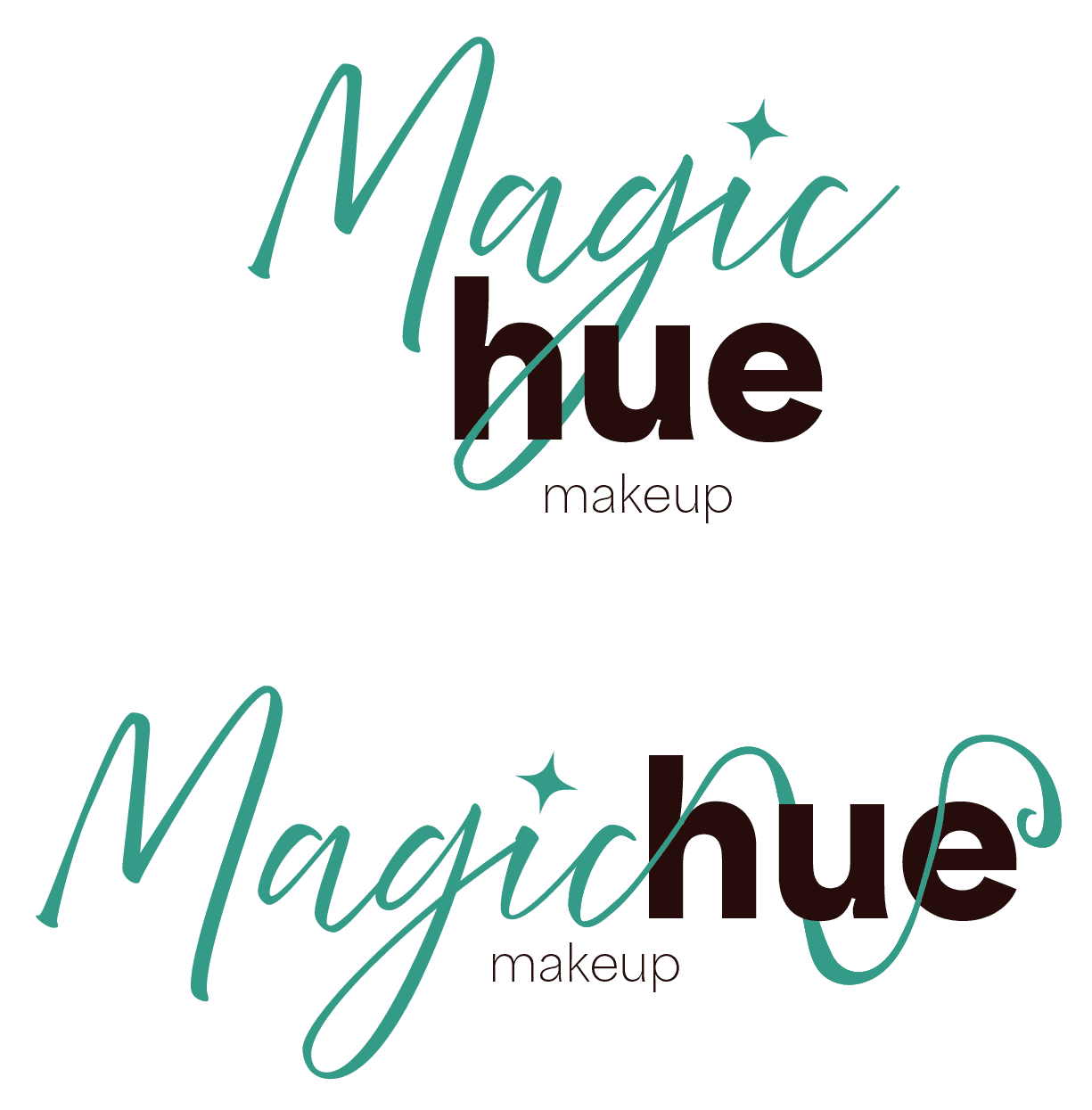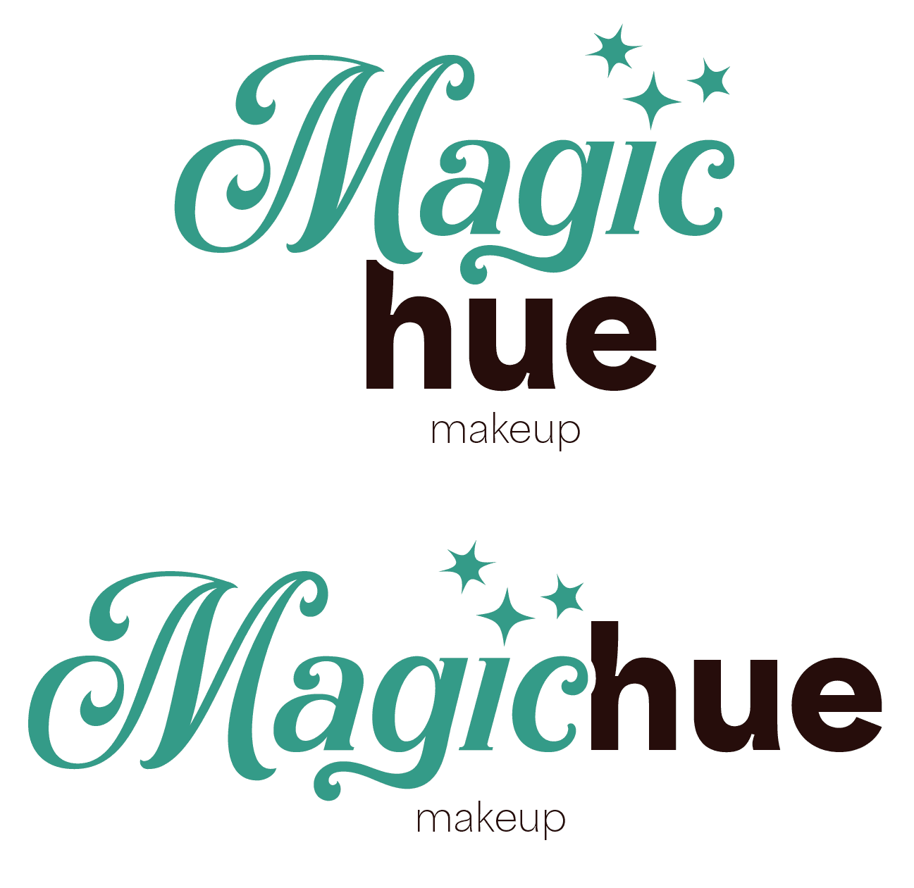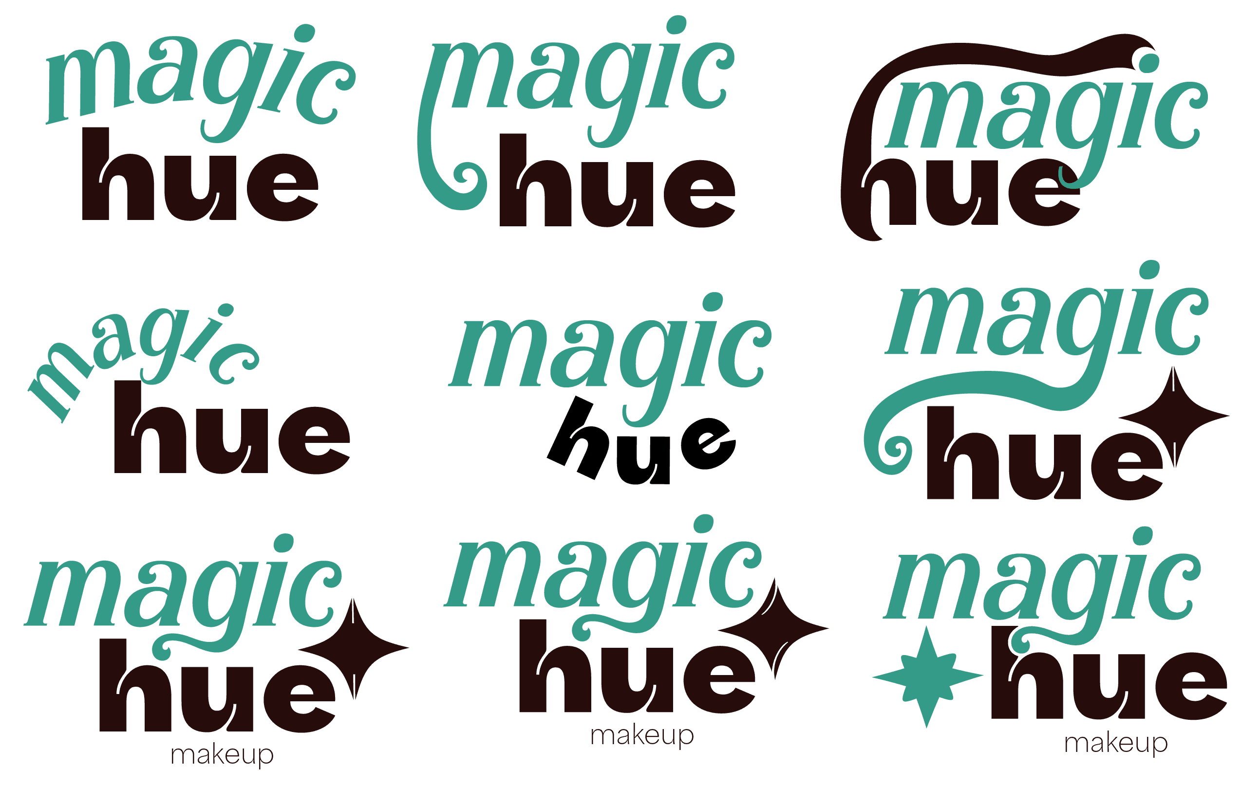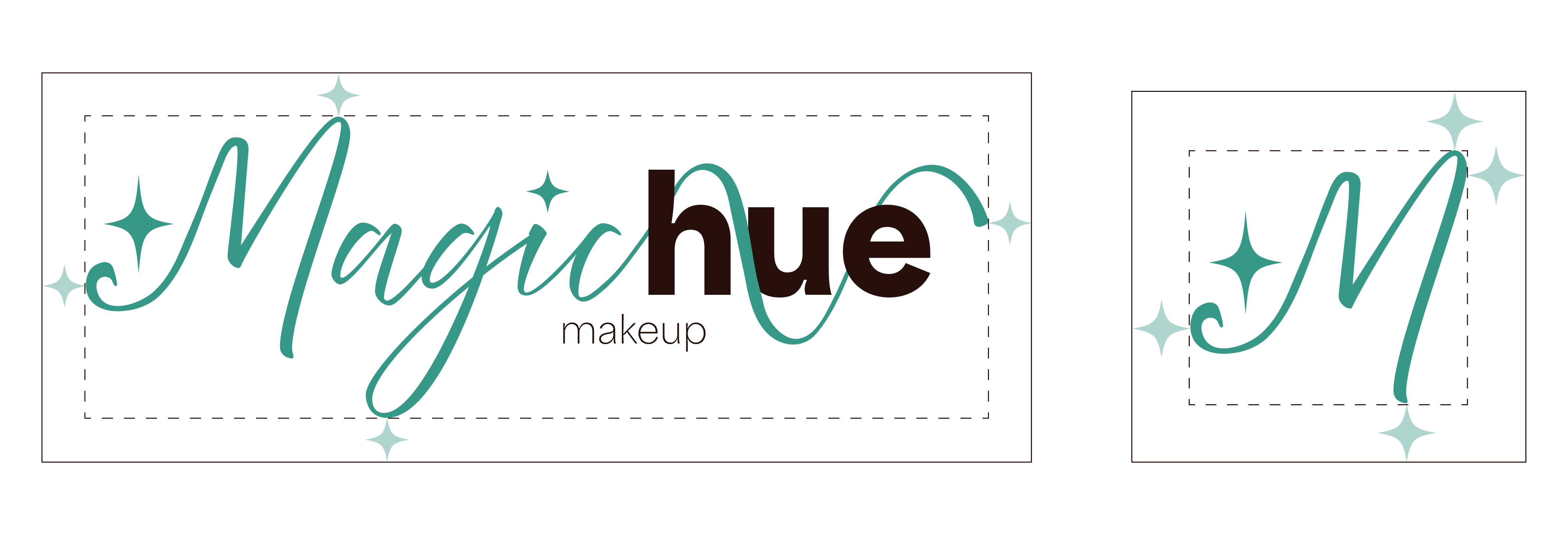 When we decided our name, our next step was to design a logo. We all came up with various sketches for the logo, but we ended up going with a sketch I designed and finalized. We came up with a logo and a logo mark for packaging and social media. We created various variations of the logo so it could be adapted to any color background when used for advertisings. Instead of creating a black and white version of the logo, we used Magichue's brand colors hue darkest and hue lightest.