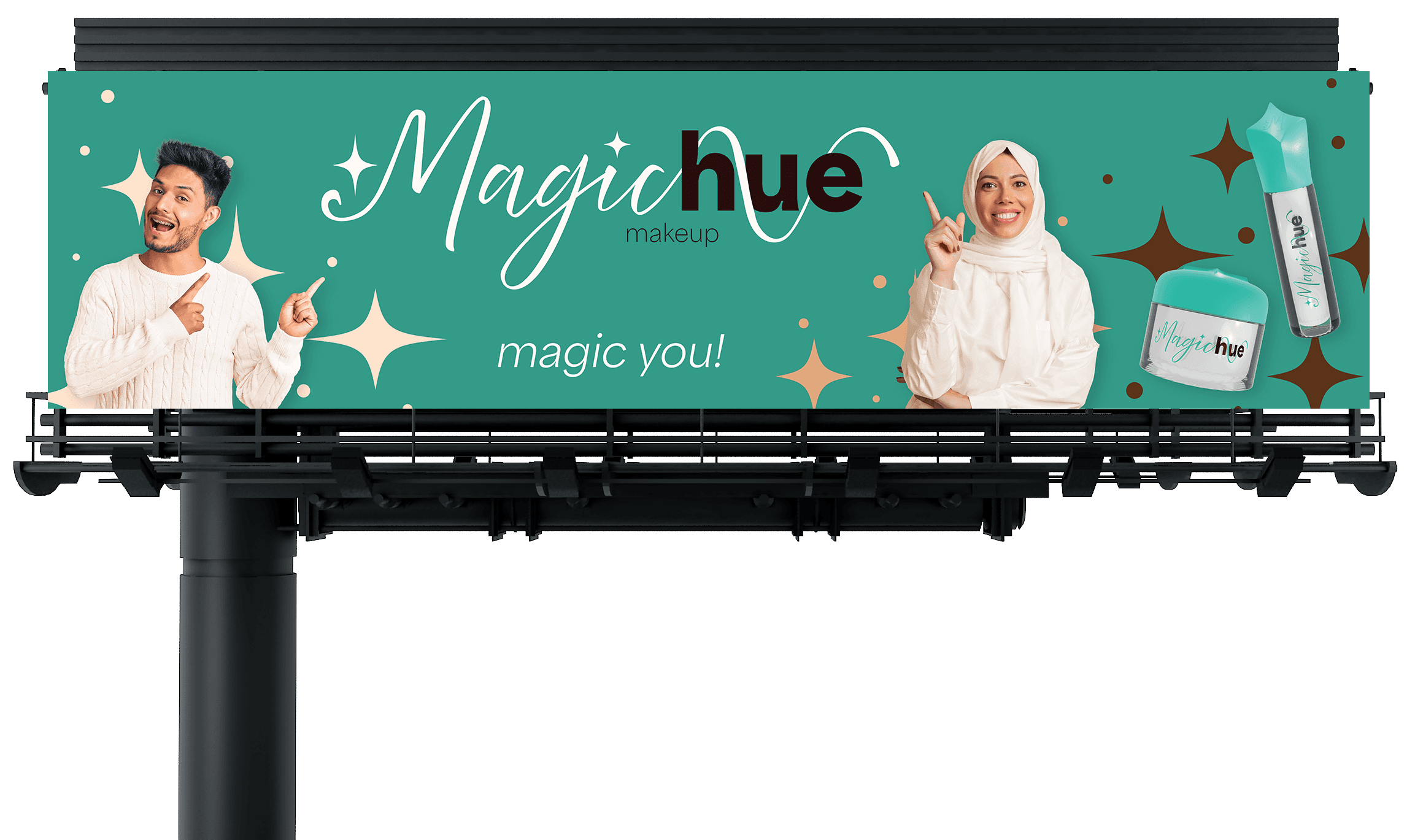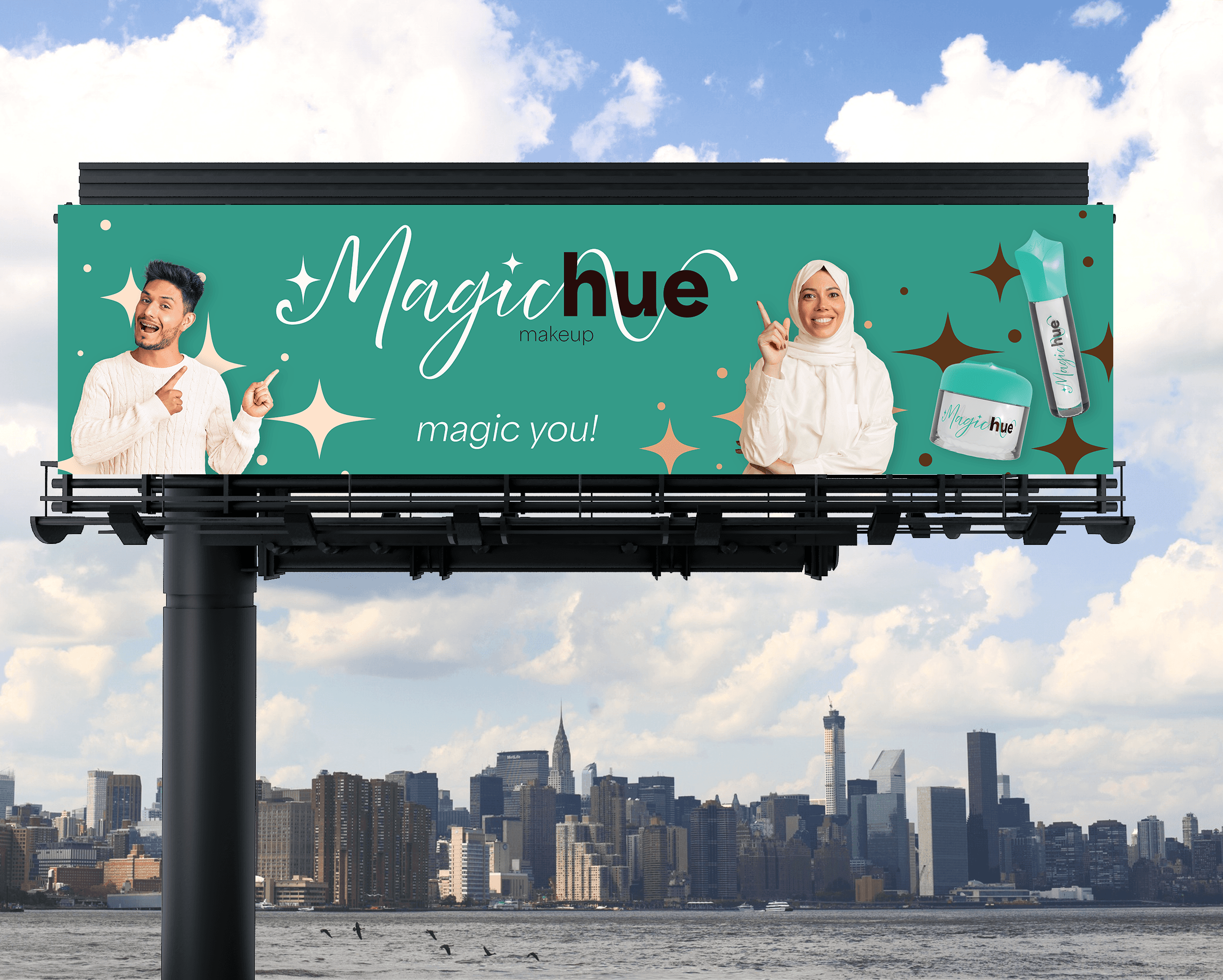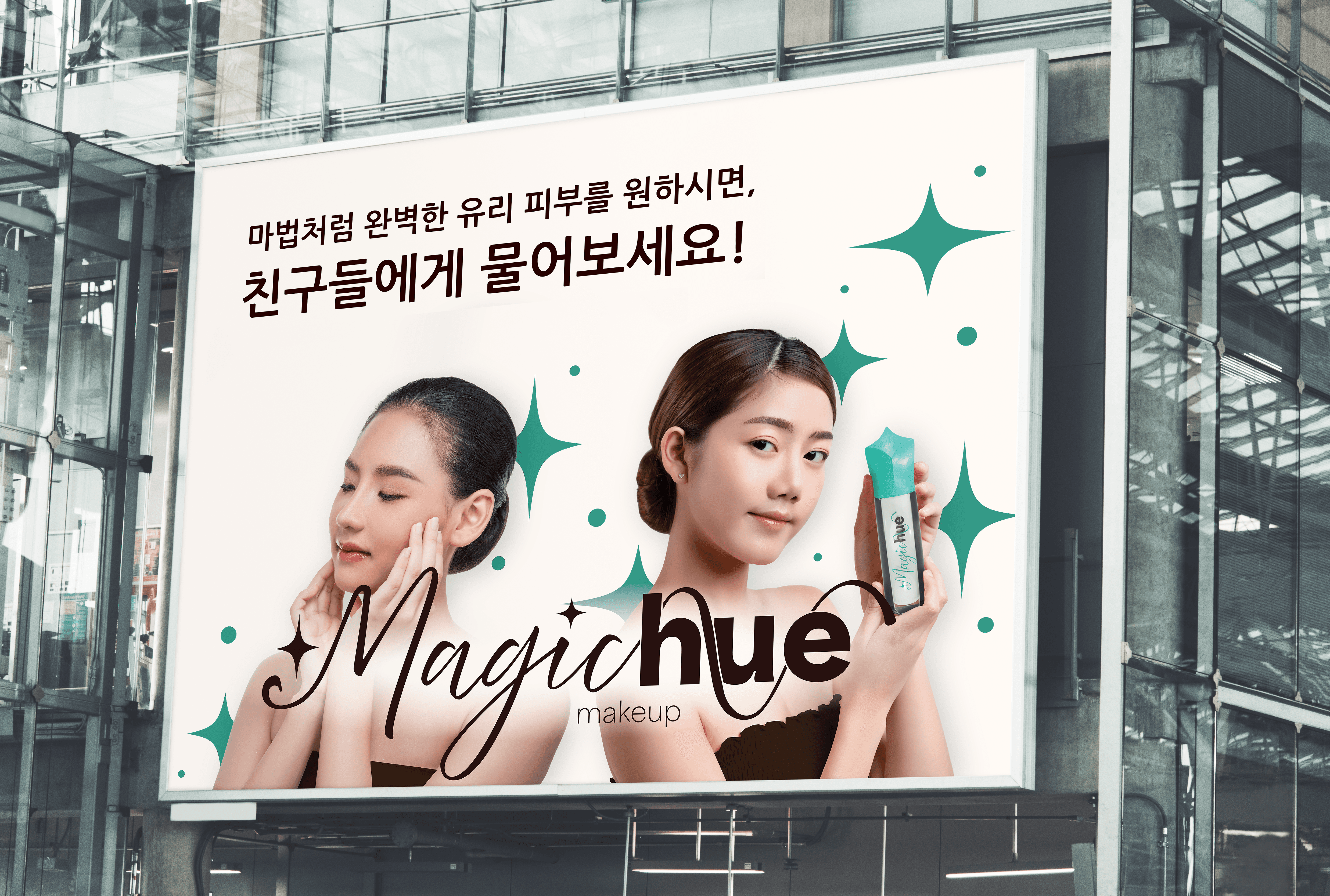 I created different examples of how Magichue could market it's product. I designed a postcard, poster, and 2 billboards. The poster highlighted the product in collaboration with another makeup brand to further it's reach in the market.